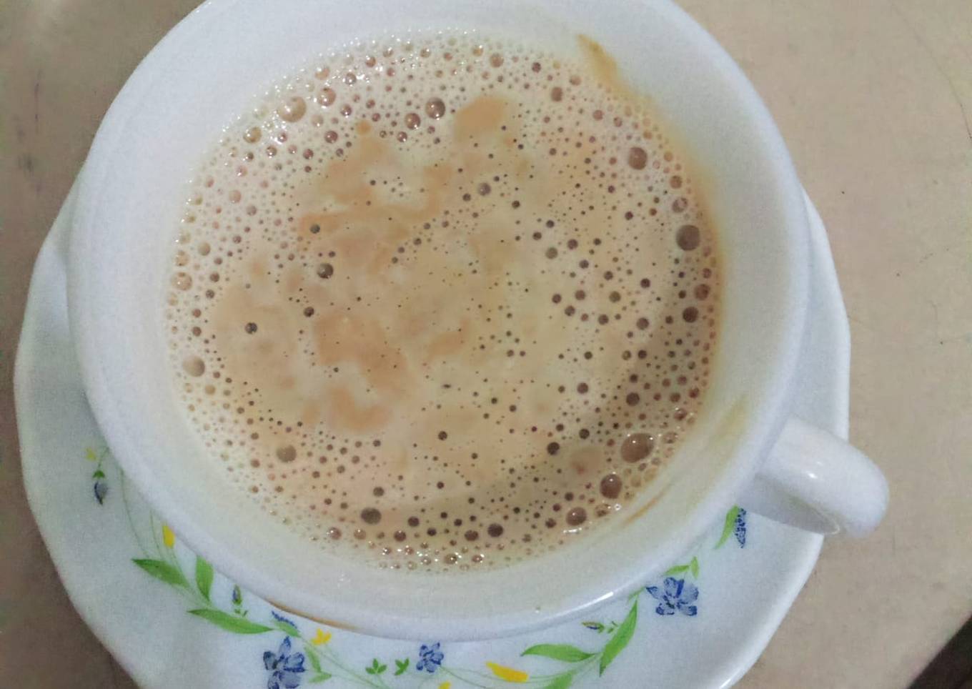 - Doodh ko stir kar ke coffee cup main daalain ahista sey