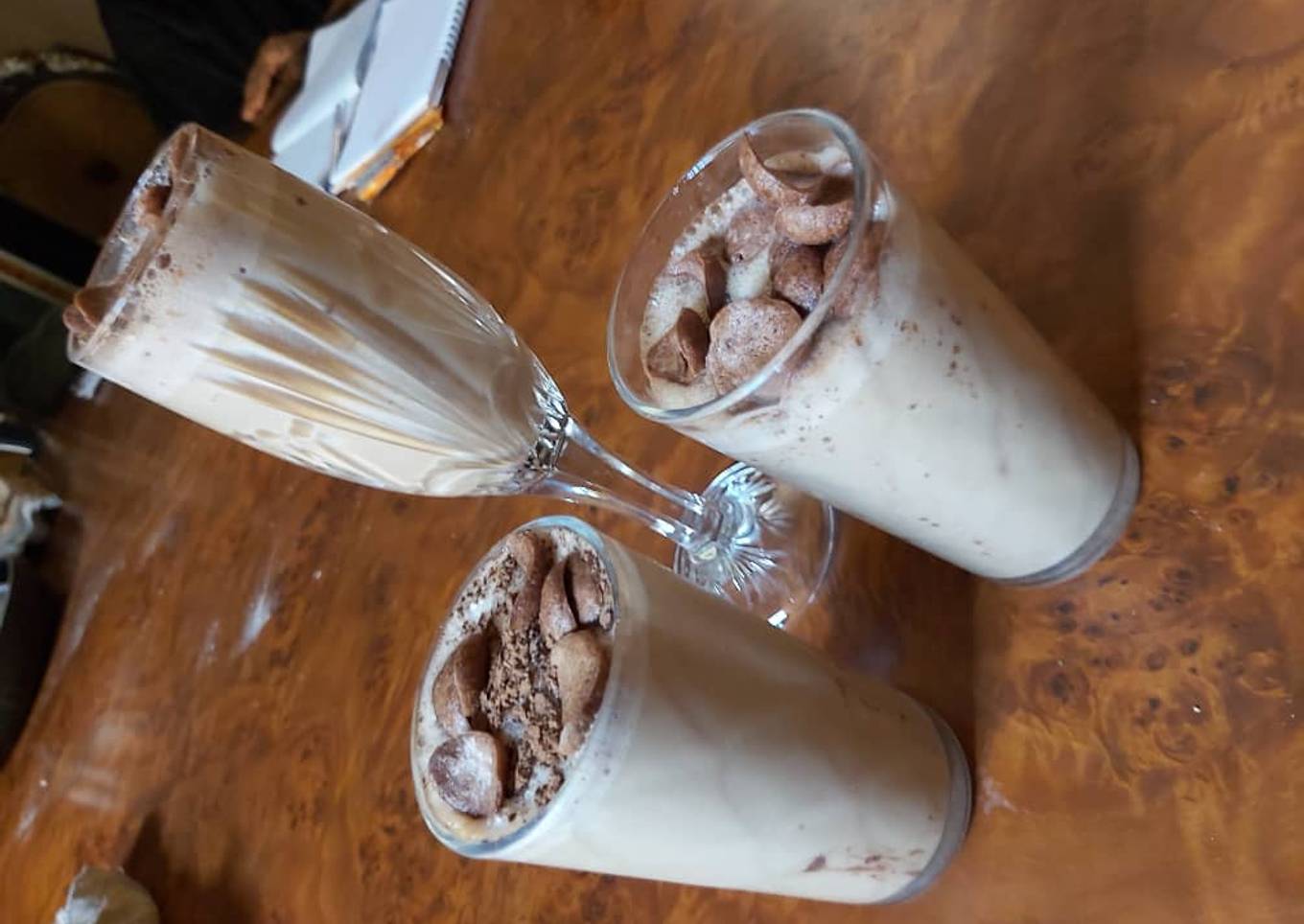 - In a blender cup add ice cubes, milk, powdered milk and coffee mixture, process all till well blended and serve in a glass cup, you can dust cocoa powder on top or any topping of choice.